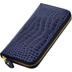クロコダイル 長財布 型押し 牛革 メンズ レディース(ミッドナイトブルー)