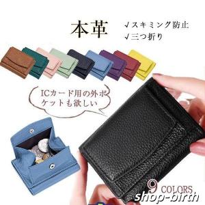 ミニ財布 三つ折り財布 本革 牛革 レディース 小さい メンズ スキミング防止 小銭入れ カード入れ コンパクト レザー かわいい おしゃれ 極小 プレゼント