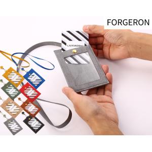 FORGERON ネックストラップリール付パスケース ファスナー/スナップボタン ネックホルダー付き PUレザー 伸縮リール付き 窓付きポケット 定期入れ [676R]