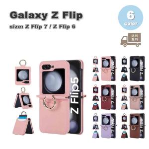 ギャラクシー Galaxy Z Flip7 / Z Flip6 PUレザー カード3枚収納 リング付 ヒンジ保護 全6色 ケース ゼットフリップ 耐衝撃 軽量 カバー 送料無料