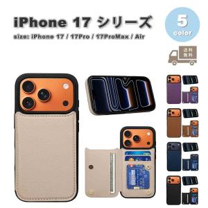 iPhone PUレザー カード収納 スタンド機能 シンプル 全4色 ケース 17/17Pro/17ProMax/Air/16/16Pro/16Plus/16ProMax/16e 耐衝撃 薄型 軽量 カバー 送料無料
