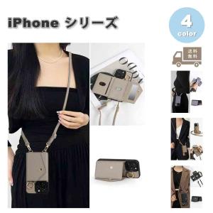 iPhone レザー カード収納 ケース ミラー付き ショルダー ストラップ付き クロスボディ 財布 ウォレット 全4色 15/15Pro/15Plus/15ProMax カバー 耐衝撃 薄型