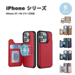 iPhone マグネット式 フリップ PUレザー MagSafe 全5色 ケース 17/17Pro/17ProMax/Air/16/16Pro/16Plus/16ProMax/16e 耐衝撃 薄型 軽量 カバー 送料無料