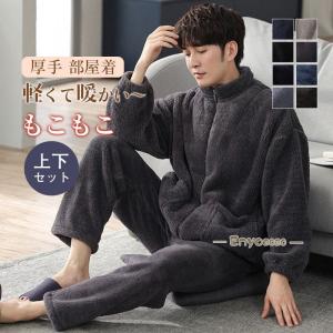 パジャマ 上下セット ルームウェア メンズ リラックス ボア 裏起毛 裏ボア 着る毛布 室内用 前開き 秋冬 暖かい 無地 厚手 セール