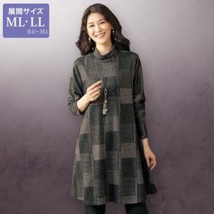 プルオーバー トップス レディース おしゃれ 秋冬 ミセス シニア ファッション 40代 50代 60代 70代 80代 起毛切替えモチーフ付ロングプルオーバー