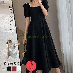 ワンピース 半袖 レディース 春夏 おしゃれ きれいめ 薄手 黒ワンピース 膝丈 おとな 通勤 デート パーディー