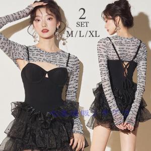 水着 夏 レディース ワンピース 春 体型カバー ワンピース 可愛い 韓国ファッション 英字 チュール 水着 可愛い おしゃれ