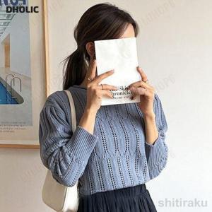 レディース 韓国ファッション ニット セーター ラウンドネック ざっくり ゆるシルエット 長袖 トップス カジュアル 可愛い 大人女子 シンプル 透け感 デイリ