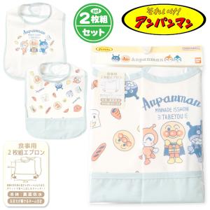送料無料 2枚組セット 男児 ベビー お食事エプロン スタイ アンパンマン 裾ポケット付き 裏面防水 ネームタグ 男の子 iw-1378b-sx メール便対応
