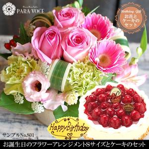 お誕生日のフラワーアレンジメントSサイズ ( No.S01 )と洋菓子店カサミンゴーの最高級ケーキとのギフトセット 花とスイーツセット ケーキと花のギフトセット