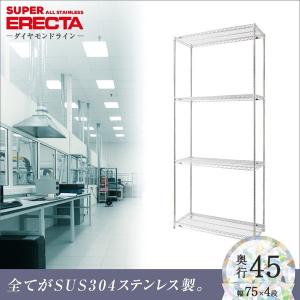 予約販売(2月中旬出荷予定) オールステンレス エレクター シェルフ幅75.8x奥行46cmx高さ189.2cm PSポール ダイカスト・アジャストボルト付 4段 業務用