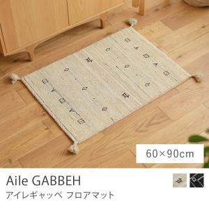 フロアマット Aile アイレ ギャッベ 60×90 インド製 ニュージーランド ウール 100% ラグ 長方形 ナチュラル ブラック リビング 玄関 L16 LORRI BUFF 270054920