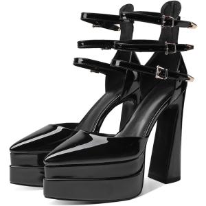 【並行輸入品】Wryffneea レディース ヒール ポインテッドトゥ アンクルストラップ ウェッジ ハイブロック チャンキー プラットフォーム パン