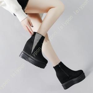 ブーツ レディース サイドジッパー 秋 冬用 プラットフォーム ショートブーティー レザー ショートブーツ アンクルブーツ ハイヒール ブーティ 美脚 黒