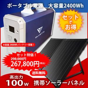 【セット】ポータブル電源 大容量 2400Wh / ポータブル ソーラーパネル 高出力100W