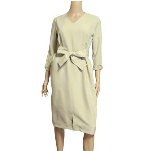新品/ドゥクラッセ DoCLASSE タイトワンピース 表記 11号 L 相当 ベージュ 無地 シンプル Vネック ひざ丈 オフィス 春 秋 レディース