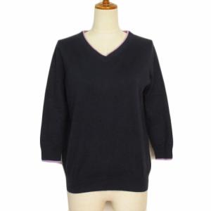 ドゥクラッセ DoCLASSE シルク混 衿ダブルニット 浅Vネック S 紺 ネイビー レディース