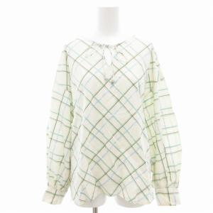 ドゥクラッセ DoCLASSE ブラウス カットソー 長袖 プルオーバー Vネック チェック リボン 9 白 ホワイト 青 ブルー /GV レディース