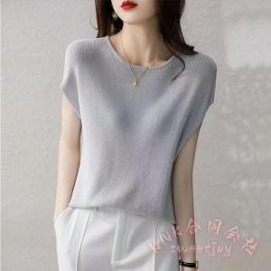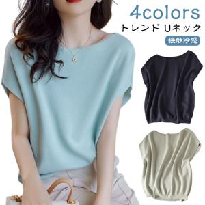 レディース 夏 トップス 半袖 ゆったり tシャツ 夏服 接触冷感 春夏 ラウンドネック おしゃれ 体型カバー サマーニット フレンチスリーブ カット