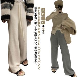 送料無料 ロングパンツ 長ズボン ニット ワイドパンツ もこもこ カジュアル アウター 秋冬 厚手 ふわふわ ストリート イージーパンツ トレンド 紐