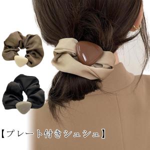 シュシュ ヘアアクセサリー プレート付き ヘアアクセ シフォン ヘアゴム こなれ感 モード 上品 華やか おしゃれ 大人 まとめ髪 簡単 アレンジ 時
