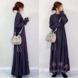 ワンピース レディース 40代 50代 きれいめ 長袖 KNK 秋 冬 韓国風 上品 ゆったり 着痩せ OL 大きいサイズ 体型カバー マキシ 大人コーデ 通勤 デート こなれ感
