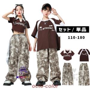 k-pop衣装 キッズダンス衣装 ブラウン 迷彩柄 ユニセックス HIPHOP ブレイキン ヒップホップ 子供服 男の子 女の子 光沢感 ガールズ K-POP ステージ衣装 練習着