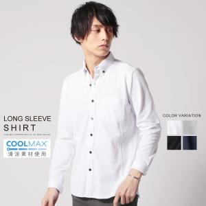 吸湿 速乾 鹿の子 素材 長袖 シャツ メンズ