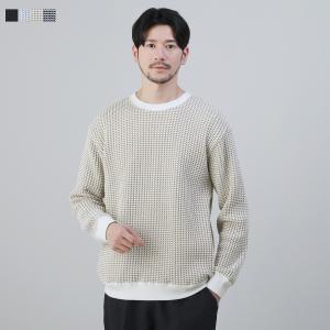 プルオーバー ニット ワッフル メンズ 2トーン ビッグワッフル ニット ワッフルニット トップス 長袖 クルーネック