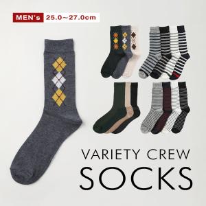 【メール便対応】 ソックス 靴下 メンズ 男性用 クルーソックス リブソックス アーガイル ボーダー パイル ウール混 リブ フリーサイズ
