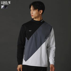 ゴルフウェア カットソー メンズ 長袖 ハイネック CVCスムース 切り替え ゴルフ トレーニング 伸縮性 薄手 配色 ストレッチ 45936