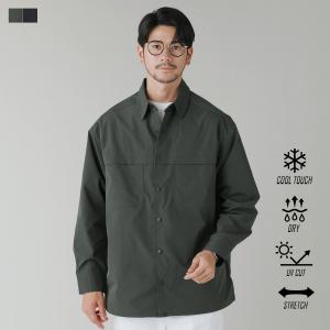 【セットアップ対応】 シャツ トップス メンズ 夏 秋 長袖 フィッシングシャツ レギュラーカラー リップストップ 接触冷感 速乾 ストレッチ 紫外線カット