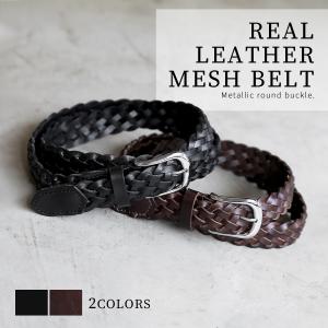 ベルト メッシュベルト メンズ 本革 リアルレザー ラウンドバックル メタリック 学生 高校生 カジュアル ギフト プレゼント