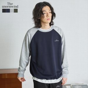 スウェット プルオーバー トレーナー トップス メンズ ラグランスリーブ ブランド刺繍 ロゴ 裾 ドローコード アーバン 配色 切替え