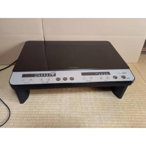 アイリスオーヤマ 2口 IHクッキングヒーター 工事不要 1400W 100V 脚付き ブラック IHK-W12SP-B
