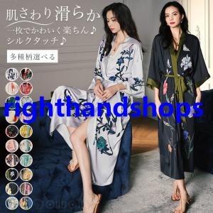 バスローブ レディース 薄手 シルクタッチ ガウン 夏用 ママ 部屋着 ルームウェア ロング ガウン 単品 ナイトガウン レース サテン浴衣 和服 レディース 浴衣式