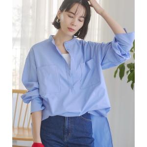 ブラウス シャツ バンドカラー チュニック シャツ (長袖) レディース