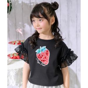 tシャツ Bigイチゴ袖フリル 半袖Tシャツ キッズ 子供服 女の子