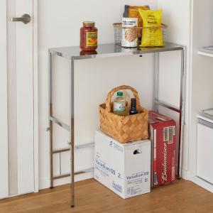 幅と高さが伸縮できるステンレス作業台 幅46-75cm 奥行30cm キッチン収納 レンジ台 キッチンラック 630411