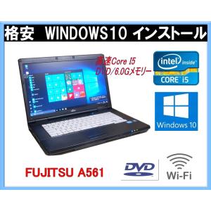 中古パソコン 90日保障 WINDOWS10クリーンインストール すぐに活躍!FUJITSU A561/572 メモリー6.0G 高速CoreI5 2.50G DVD 無線 互換OFFICE