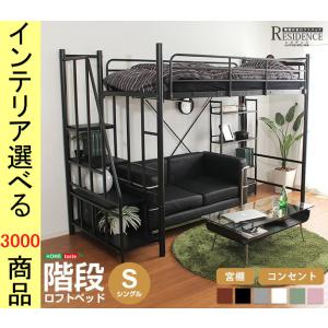 ベッド ロフトベッド 100×255×173.5cm スチール 階段・棚・コンセント・ハンガーポール付き 高さ2段階調節可 フレームのみ シングル 6色展開 YHHT7095