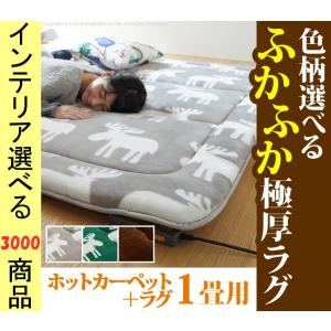 ホットカーペット+カバー 188×98×5cm ポリエステル 撥水加工 鹿柄・無地 アルミ保温シート付き 3色展開 YNI2000073 (うれしかシリーズ)