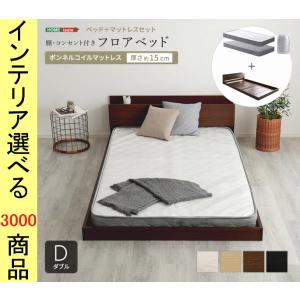 ベッド フロアベッド+マットレス 145.2×215×45cm 棚・コンセント付き ボンネルコイルマット ダブル 4色展開 YHMODBRMD