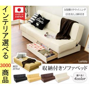 ソファベッド 190×80×76cm 塩化ビニール 引き出し付き 3人掛け 日本製 アイボリー・ブラウン・ベージュ・ブラック色 YHSH06LNASB