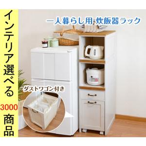 炊飯器台 30×40×116cm 木製 1口コンセント・ダストボックス付き ホワイトウォッシュ色 YC8500048336