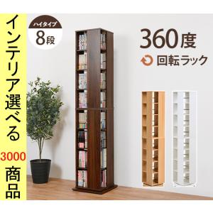 本棚 コミックラック 39.5×39.5×182cm 回転式 8段4面タイプ インドネシア製 ブラウン・ナチュラル・ホワイト色 YC8500048792