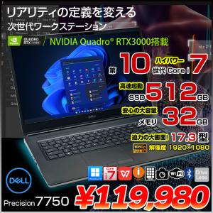 【中古パソコン】DELL 17.3型 PRECISION 7750 中古 ノート Office Win11 Quadro RTX3000搭載 [Corei7 10850H 32GB SSD512GB カメラ テンキー 無線 BT ]:良品