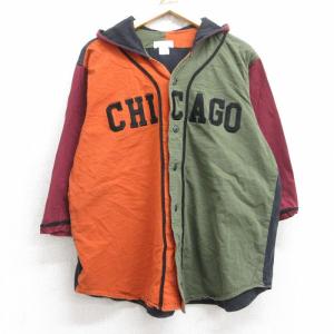 L/古着 半袖 ベースボール シャツ メンズ 80s シカゴ クレイジーパターン マルチカラー オレンジ他 spe 25aug29 中古 トップ