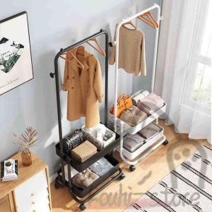 ハンガーラック おしゃれ 棚付き キャスター付き トローリーハンガー バスケット コートハンガー バスケット付き カゴ 子供 玄関 収納 多機能 大容量 収納ラック
