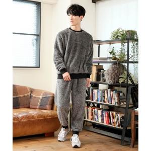 パジャマ ユニセックス シャギーボア 無地クルーネックスウェットスーツ メンズ レディース